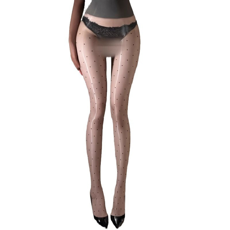 360Sexy Aurora Stockings Polka Dot Black Silk Seamless Glossy Pantyhose Women's Black Dot Stockings