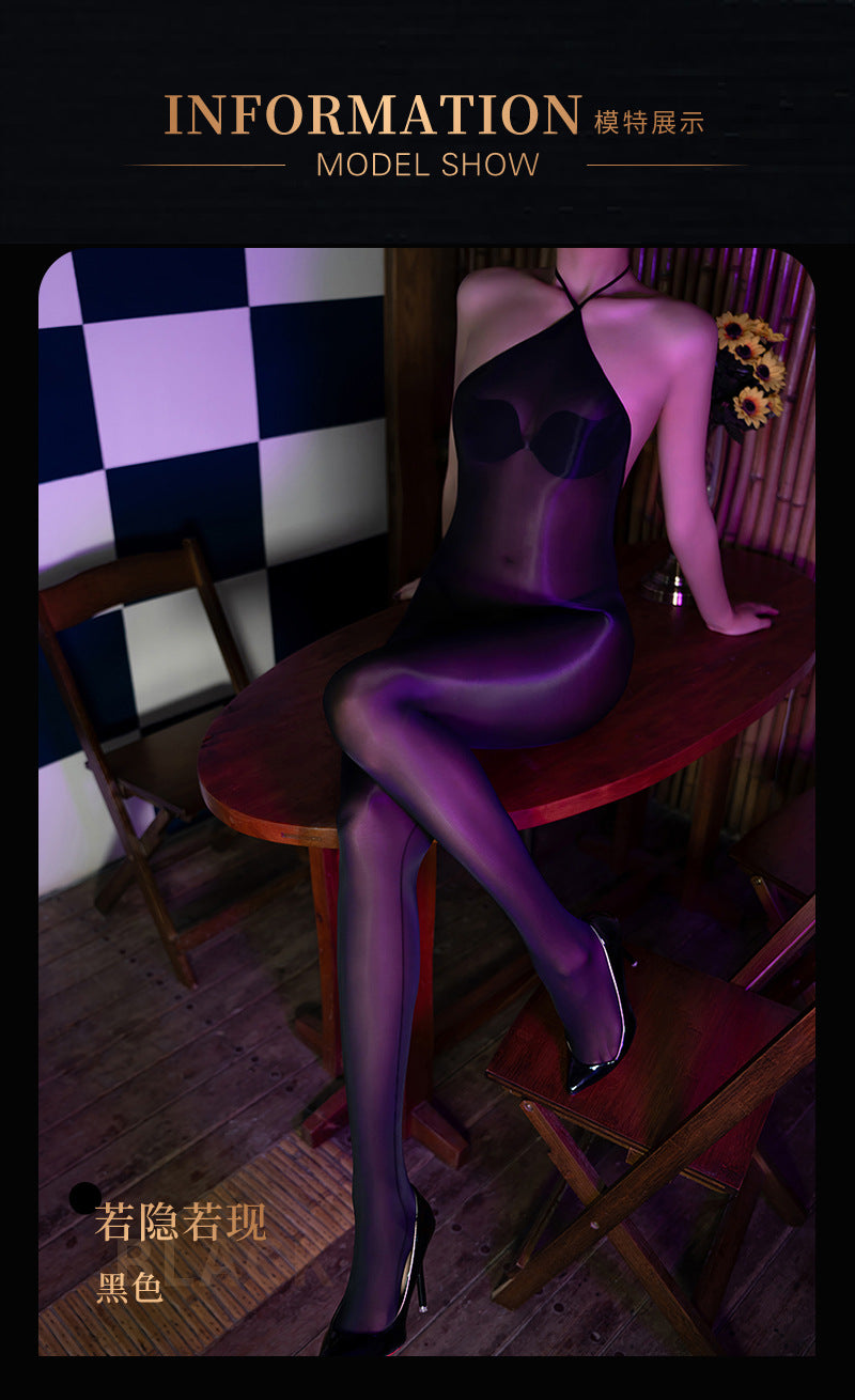 5D Glossy Stockings Bodysuit Sexy See-through Smooth Halter Neck Tie Shaping Bodysuit Open Crotch Temptation Lingerie