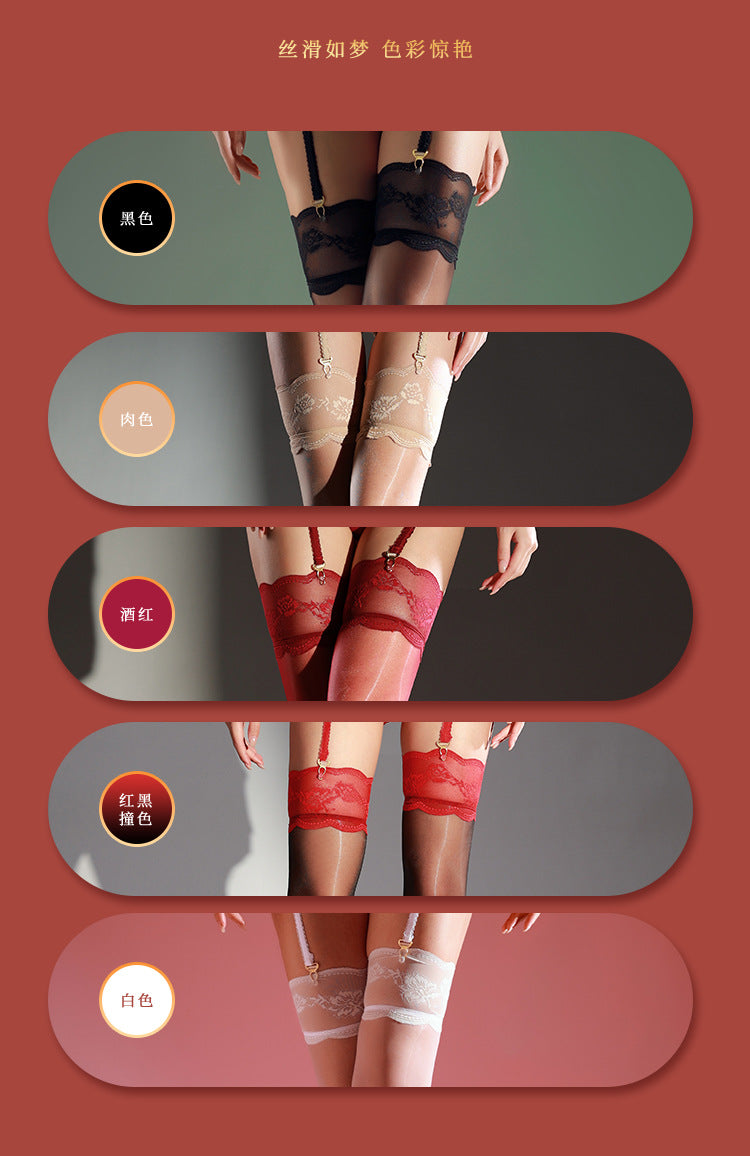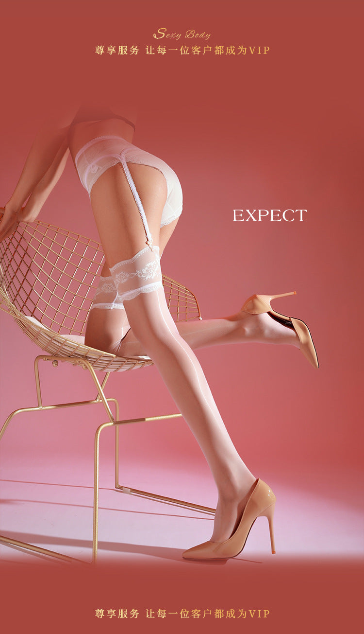 Aurora Glossy Black Silk Garter Stockings Women Sexy Over-the-Knee Long Tube Lace Stockings Pure Desire Lace One-Piece Garter Stockings