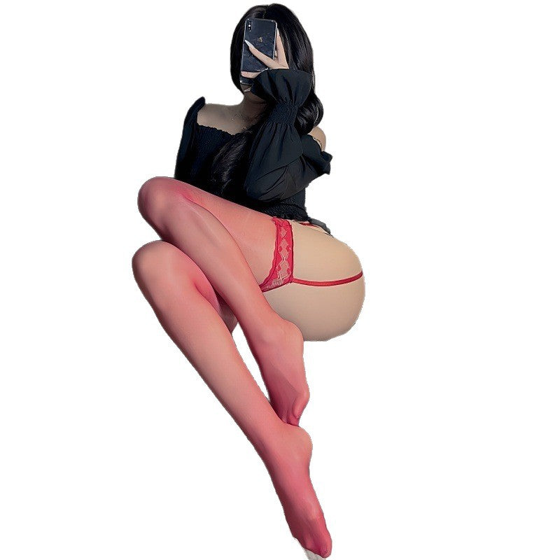 Aurora Glossy Lace Butterfly Long Tube Garter One-piece Stockings Glossy Ultra-thin Sexy Fun Open Crotch Black Stockings