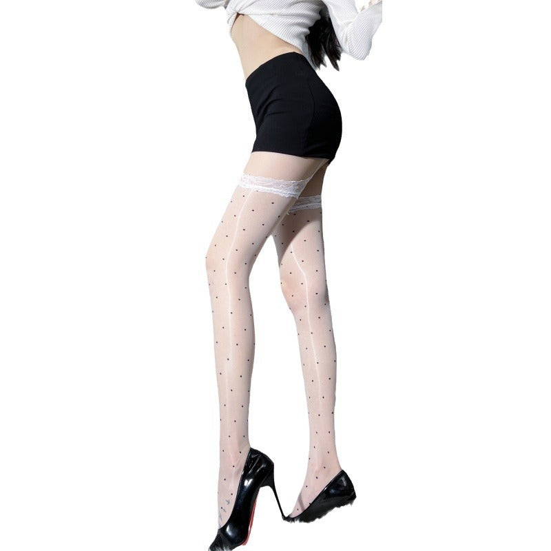 Aurora Small Lace Garter Stockings 0D Glossy Lace Trim Suspender Stockings Glossy Aurora Over-the-Knee Stockings Sexy White Silk