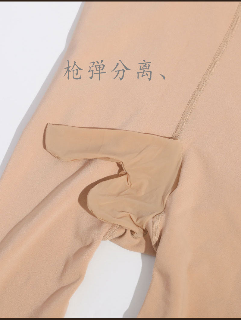 Autumn and Winter Bare Leg Artifact Men's Flesh-colored Leggings Slim High Waist Fleece-lined Warm One-piece Sexy jj Pantyhose Set