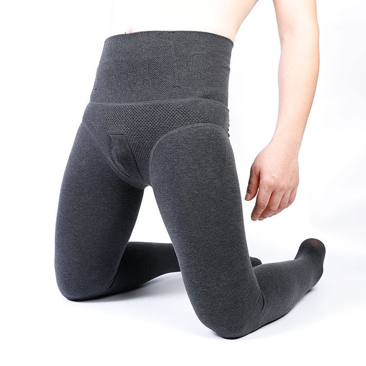 Autumn and Winter Men's Fleece-Lined Thickened Thermal Tights High-Waisted Tummy Control Slim Fit Vertical Opening Pantyhose