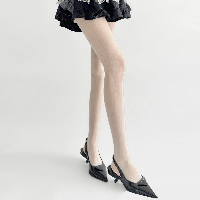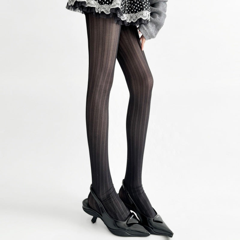 Autumn and Winter Smoke Gray Sheer Base Stockings with Dark Pattern Thin Style miu Fashion Show Style Versatile Simple Spring and Autumn Tights