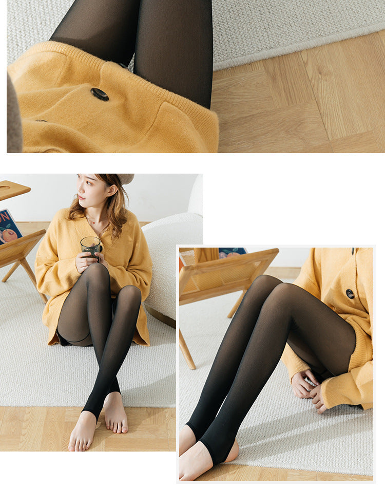 Autumn Winter Flight Attendant Gray One-Piece Pants Real Skin-Color Fleece Lined Thickened Open Crotch Warm Pantyhose Sexy Plus Size No Need to Take Off Open Crotch