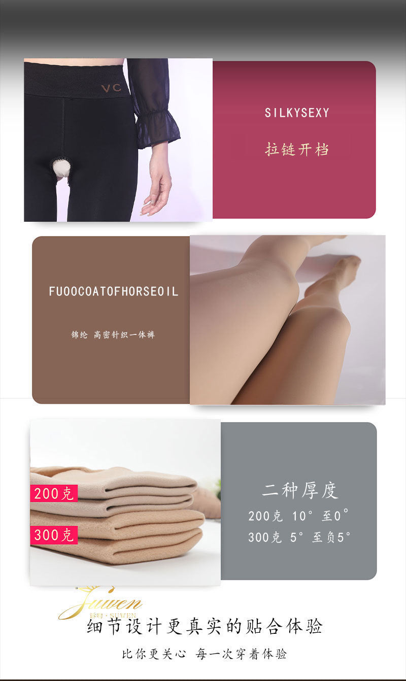 Autumn Winter Open Crotch Base Layer Pants for Women, Shiny Barbie Pantyhose, Sexy No-Remove Butt-Lifting Seamless Silky Fleece-Lined Tights