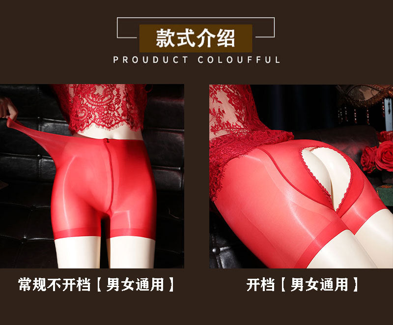 Kiss Waistless Glossy Crotchless Sexy No-Strap Silky Boxer Shorts for Women912Large Size Horse Oil Socks Underwear
