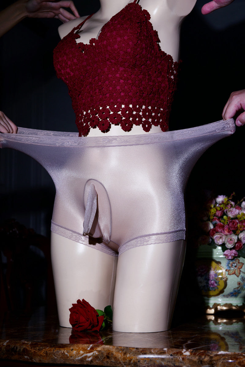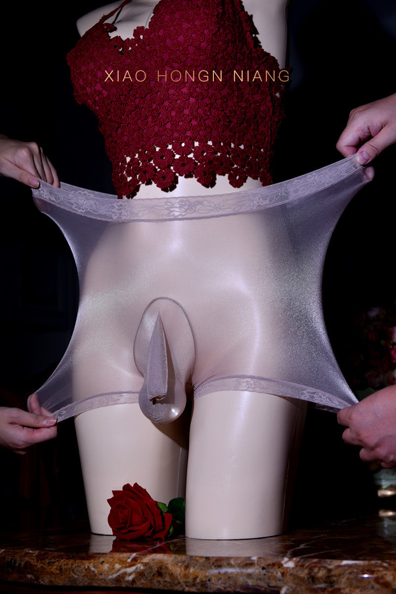 Little Red Matchmaker Floating Fly Boxer Briefs Ultra-thin Men's Silky Nude Ice Silk Plus Size Sexy Belt jj Set of Shiny Underwear