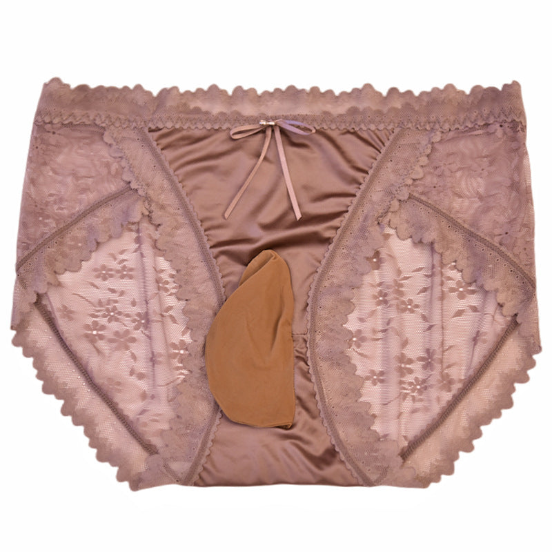 Little Red Ribbon Silky Men's Sexy Lace Underwear Satin Soft Ultra-thin Plus Size Pure Desire Sexy jj Briefs