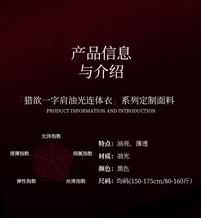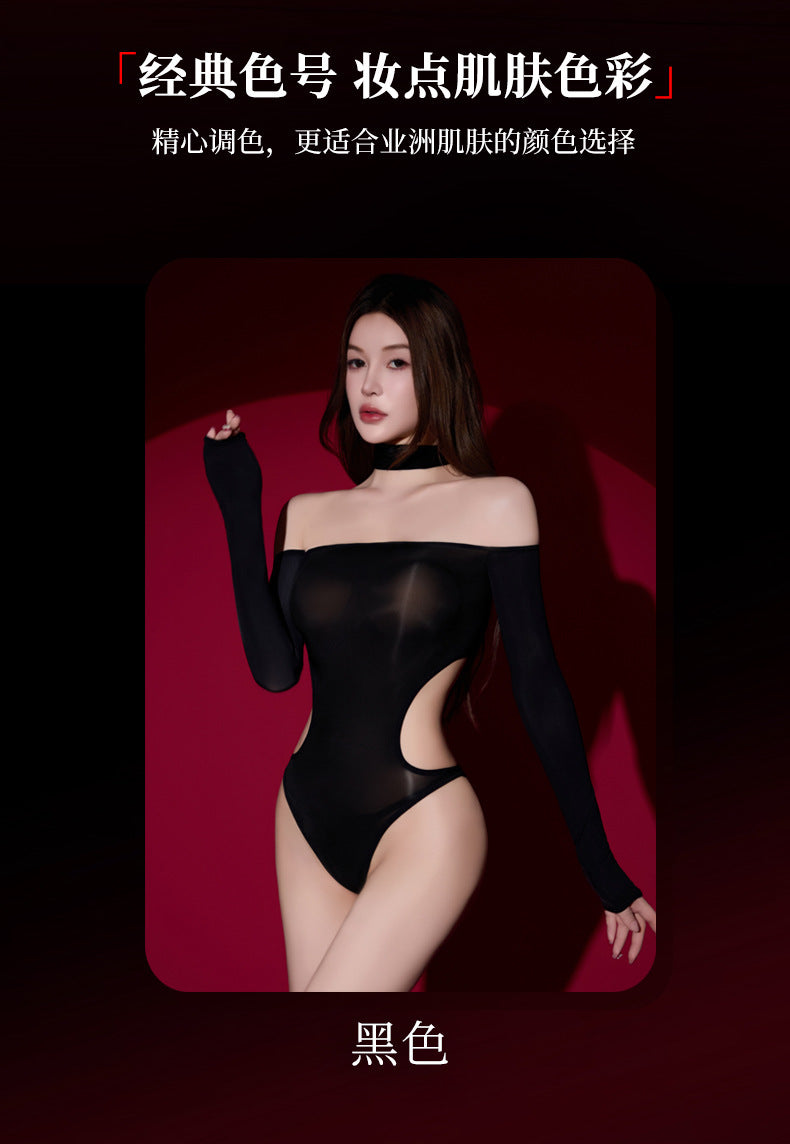 Qing He L1105A「Desire for Prey」Off-Shoulder Glossy One-Piece Swimsuit Ultra-Thin Shiny Smooth Underwear for Women Black Silk