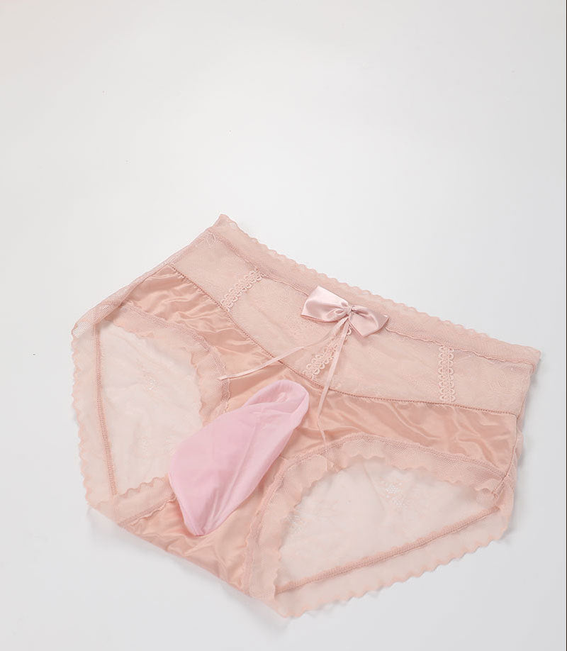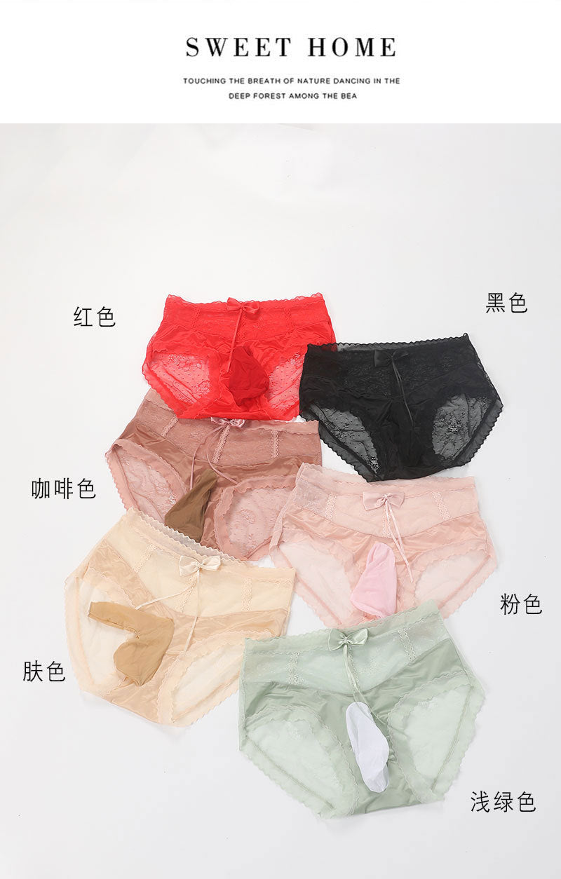 Sexy Men's Lace Briefs jj One-piece Large Size Sexy High Waist Bowknot Underwear Silky Underwear for Men