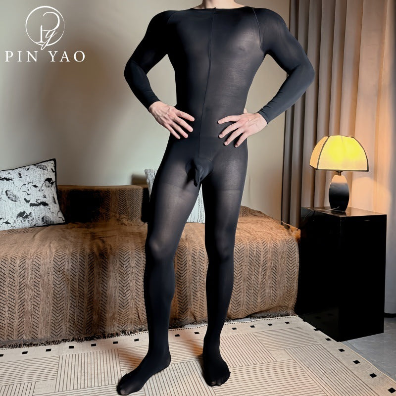 120D Velvet High Elasticity Ultra Soft Plus Size Men's Sexy Bodystocking One-piece Adult White Full Body Stockings