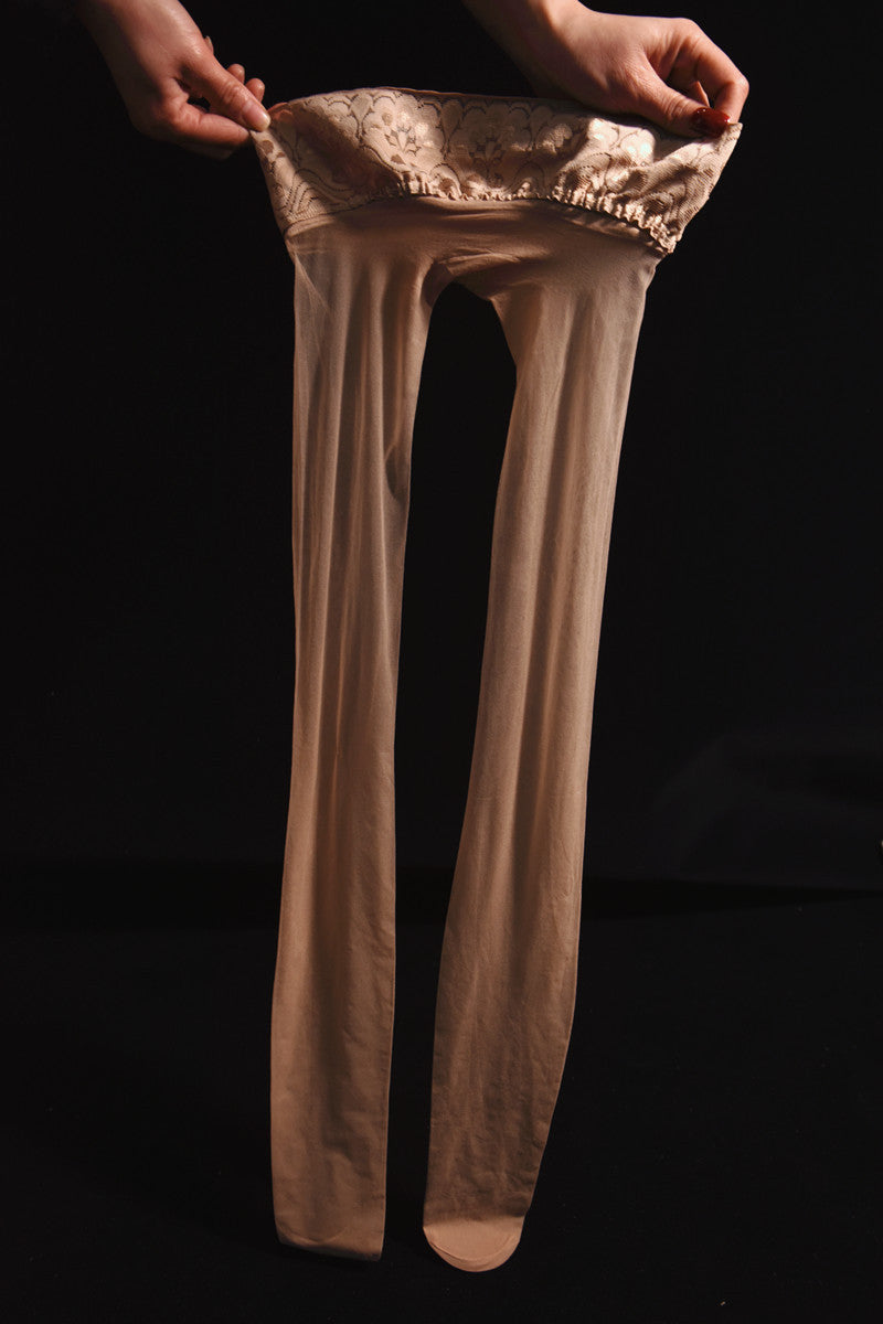 European and American Lace Silicone Non-Slip Waist Black Silk Pantyhose360Seamless Velvet Any Cut White Stockings Women Sexy