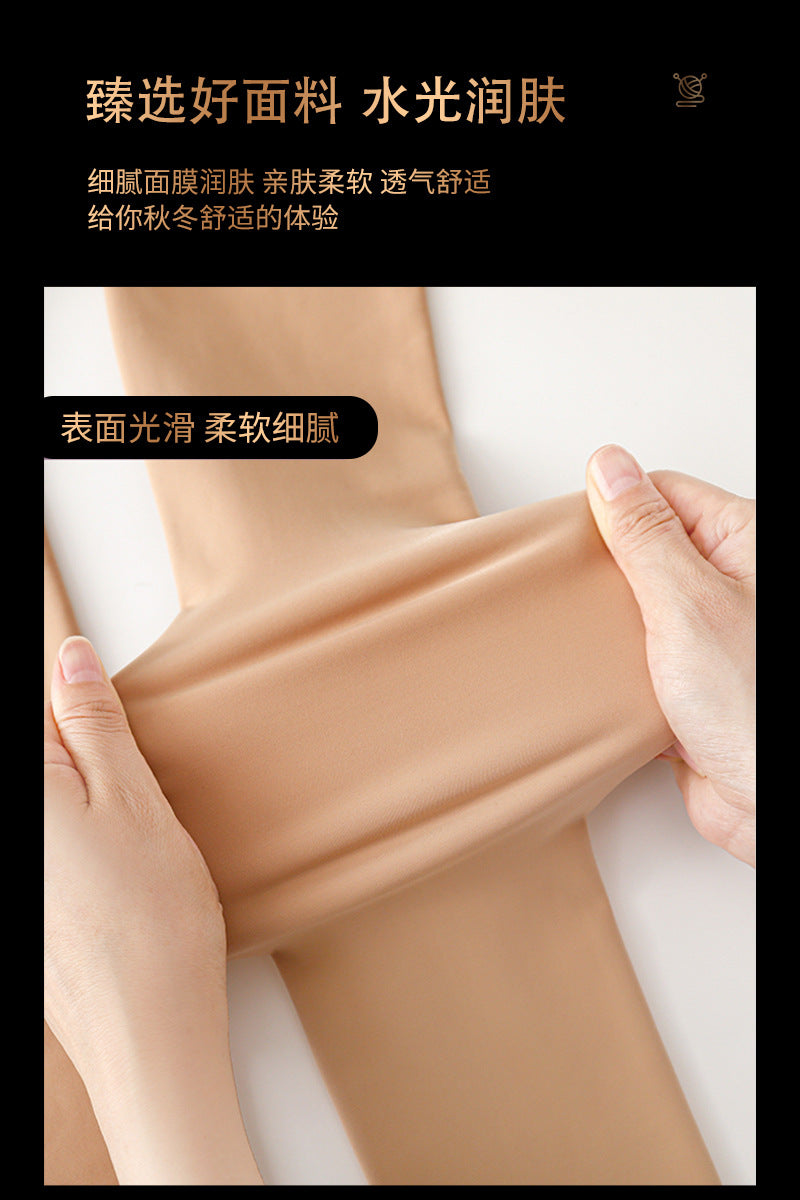 Flight Attendant Gray One-Piece Water Glossy Skin Crotchless Leggings for Women, Autumn and Winter Fleece-Lined Warm Pantyhose, Sexy No-Need-to-Take-Off Plus Size