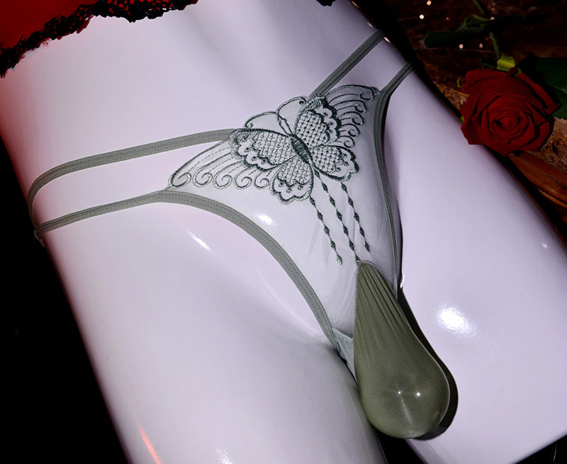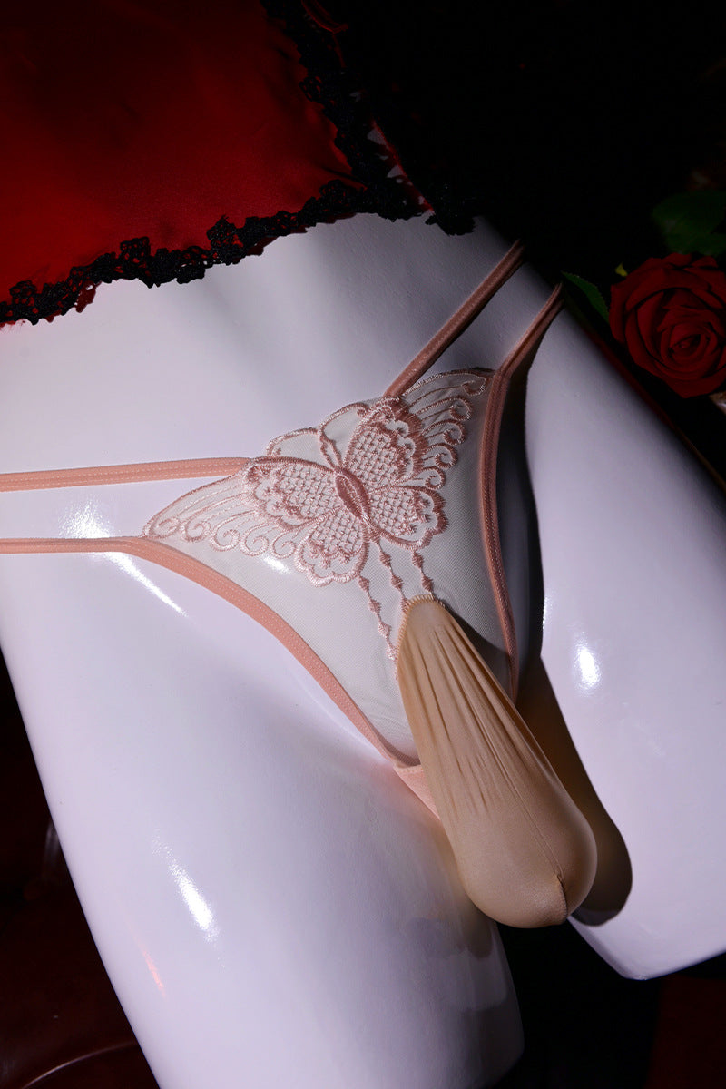 Men's Hollow Out Underwear jj Set of Nude Lace Low Waist Embroidered Butterfly Hot Temptation Transparent Sexy Plus Size Briefs