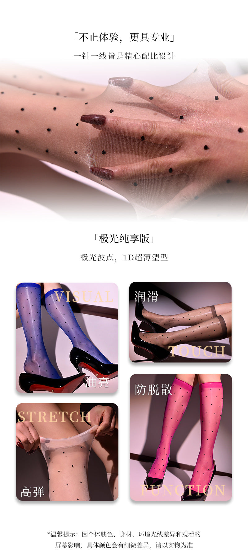 Sexy1D Aurora Polka Dot Mid-Calf Stockings Ultra-Thin Transparent Shiny Sexy Women's Black Silk Calf Socks Shaping Short Socks