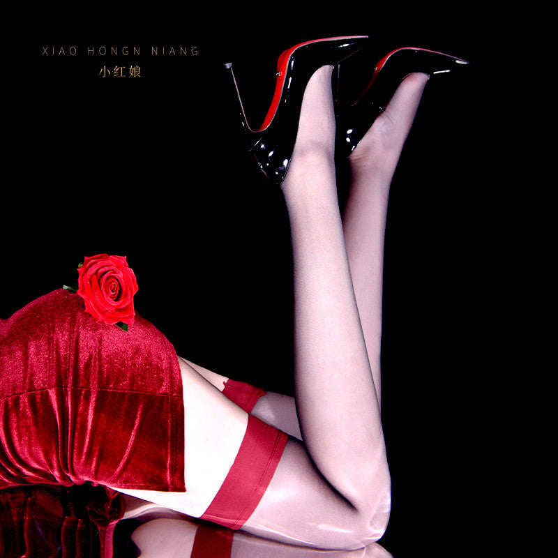 Thigh Socks Lace Ultra-Thin High Stockings Long Stockings Women Over The Knee Sexy Non-Slip Erotic Transparent Flesh Red Edge Stockings